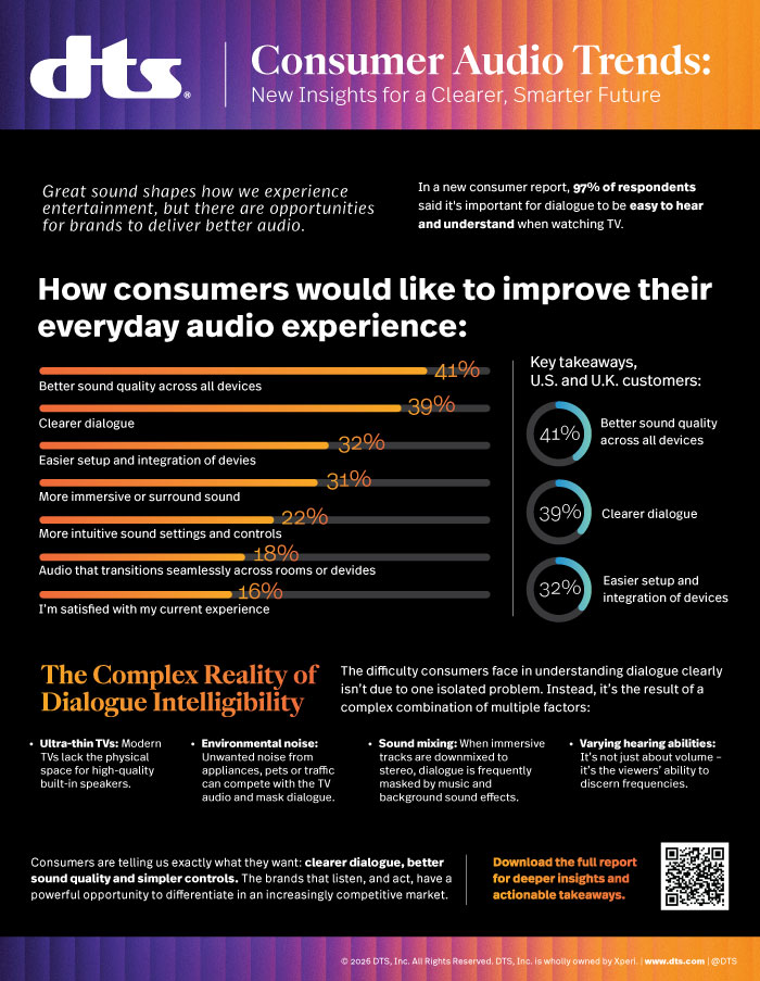 Great sound isn’t just about volume or surround effects—it’s about understanding what’s being said. In a recent consumer survey, 97% of respondents say it’s important that dialogue is easy to hear and understand when watching TV. And yet, for many viewers, that expectation still isn’t being met.